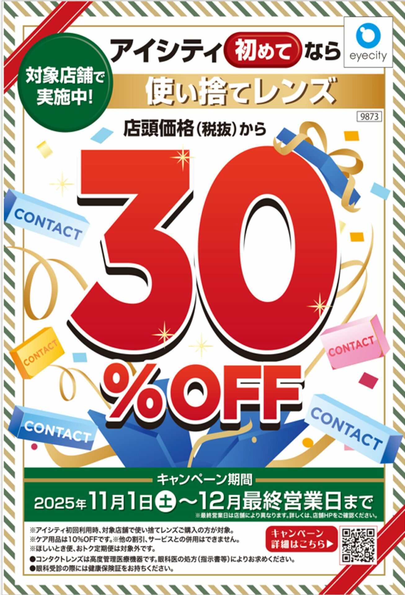 ●アイシティ初めてなら、使い捨てレンズ店頭価格(税抜)から30%OFF!