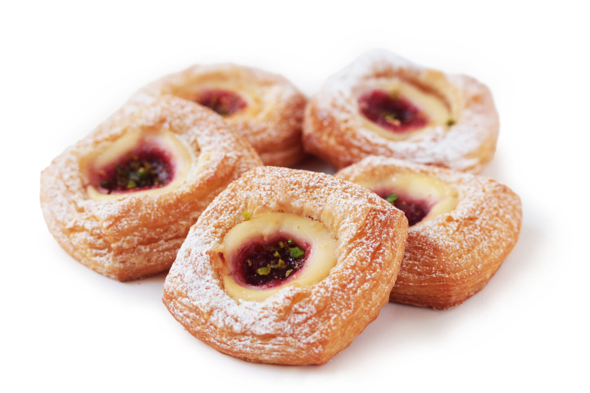 「ラズベリーレアチーズ」 甘酸っぱいラズベリージャムとレアチーズ風味のクリームがよく合います。 100g ¥324(税込) 4~5個くらい