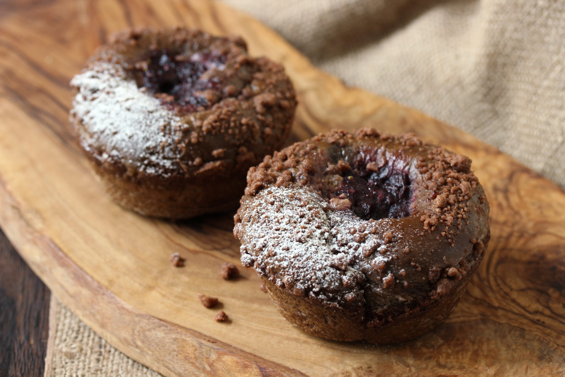 「ショコラカシス」 チョコチップと甘酸っぱいカシスをあわせて焼き上げました。 カシスの酸味がココアの甘味を引き立てます。